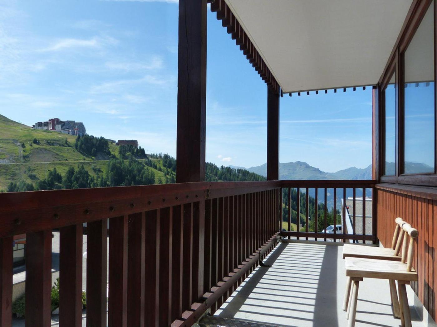 Situated in Aime La Plagne in the Rhône-Alps region, Appartement spacieux, accès direct pistes, casier à skis, 1 chambre - FR-1-181-2695 has a balcony.