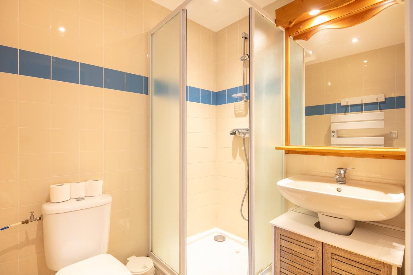 Three-Bedroom Apartment. This spacious apartment comes with 1 living room, 3 separate bedrooms and 2 bathrooms with a bath and a shower. Guests can make meals in the kitchen that features a refrigerator, a dishwasher, kitchenware and an oven. Boasting a balcony with mountain views, this apartment also features a tea and coffee maker and a TV. The unit has 8 beds.