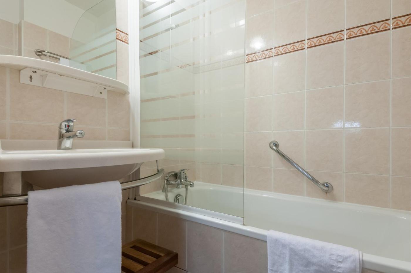 Studio with Sleeping Alcove (4 People) - South Side. This studio includes a living room with a large sofa bed (sleeps 2) and a sleeping area with 2 bunk beds (recommended for children). It has an independent bathroom with a bathtub. The fully equipped kitchenette opens onto the living area. You are requested to clean the kitchen area before your departure. ;