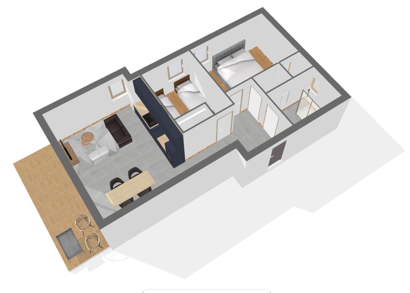 Two-Bedroom Apartment. The apartment features 2 bedrooms, 1 bathroom and a kitchen. The apartments kitchen is available for cooking and storing food. The spacious apartment provides a washing machine, heating and a balcony. The unit offers 3 beds.