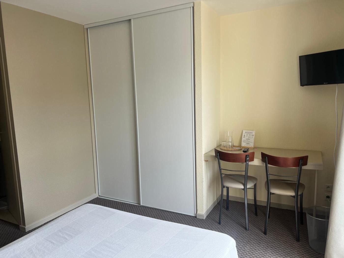 Standard Double Room. The rooms include a desk, a wardrobe and a private bathroom. There is a flat-screen TV with 26 channels. ;